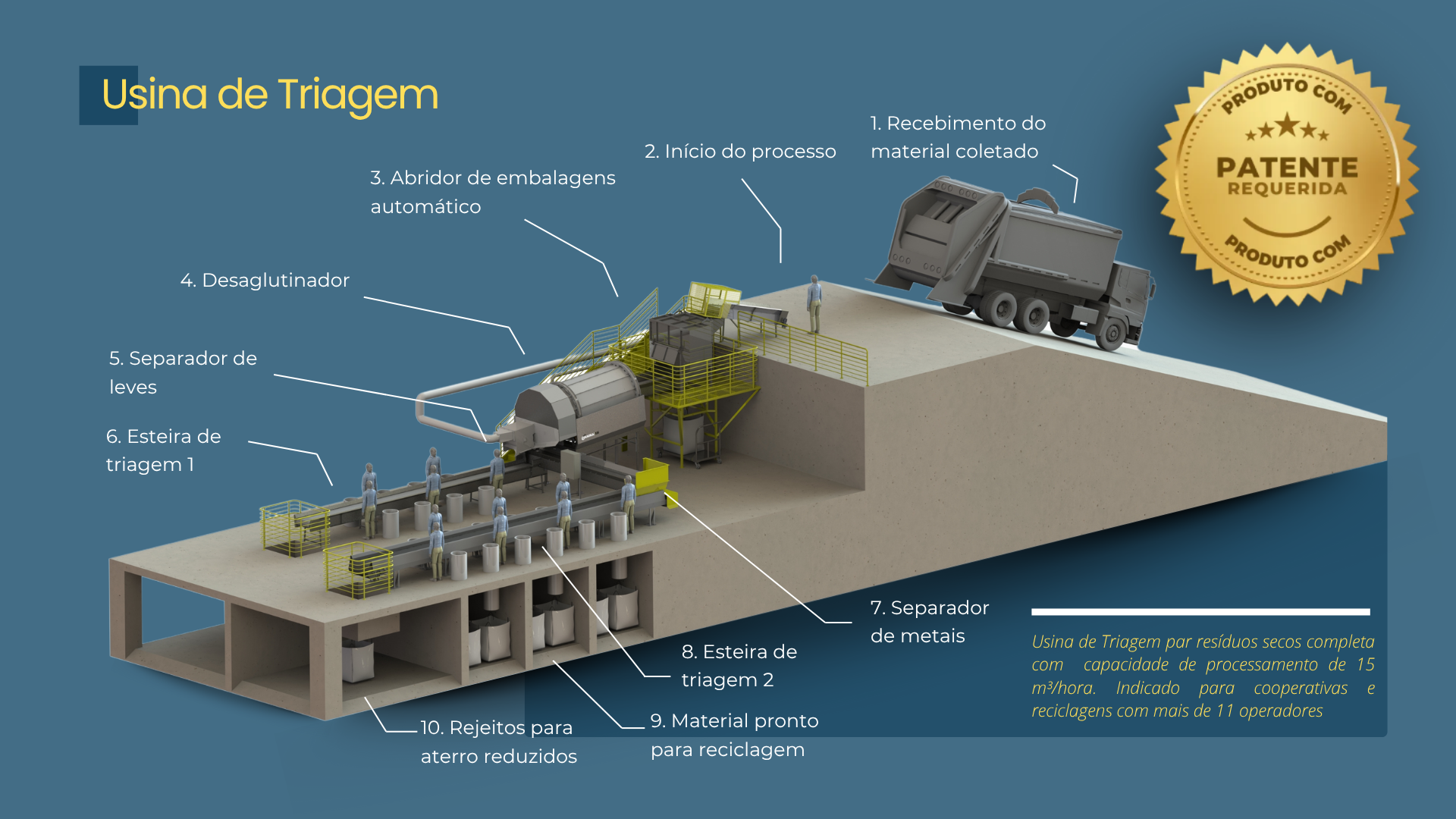 Soluções inovadoras para o processamento de resíduos, aumentando o rendimento de cooperativas e empresas.